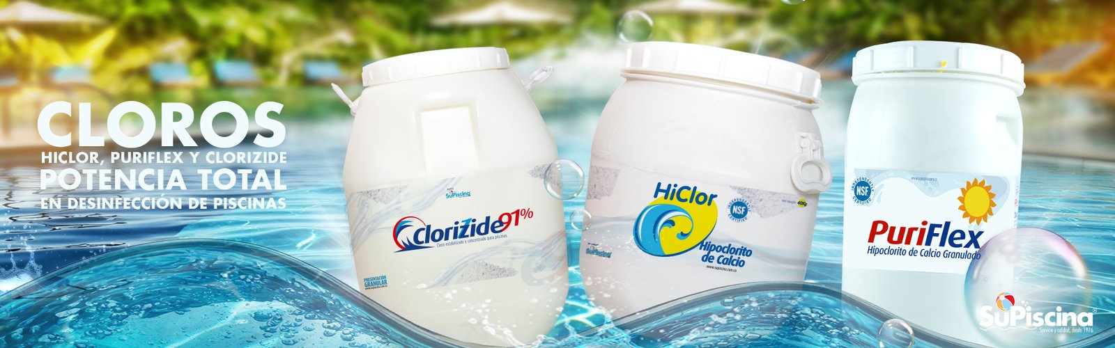 Con Hiclor, Puriflex, y Clorizide, tienes garantizados productos de alta calidad para el tratamiento de tu piscina.