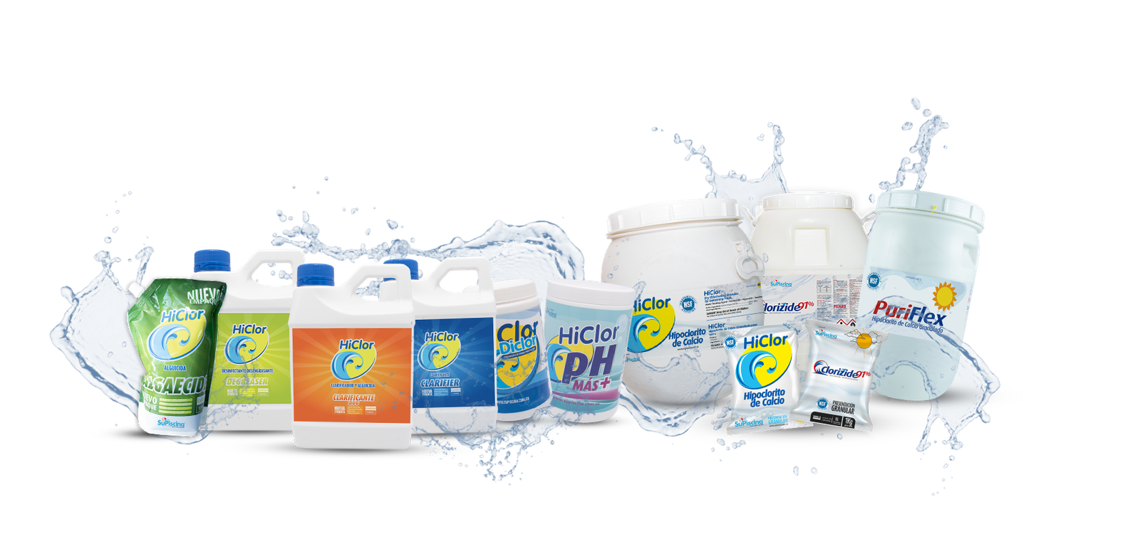 Con Hiclor, Puriflex, y Clorizide, tienes garantizados productos